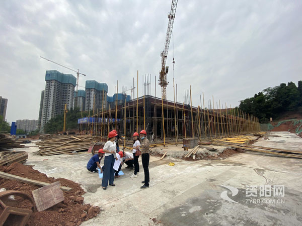 5月13日,记者在雁城槐树东路资阳幸福博文学校施工现场看到,三四台挖掘机正在山坡上卖力地挥舞着“手臂”,四五辆大货车轮番进场装载运输土石方,部分施工便道已经修建完毕,教学楼也拔地而起、初具模型,现场七八十名工人同时施工作业,一派紧张繁忙的施工景象。